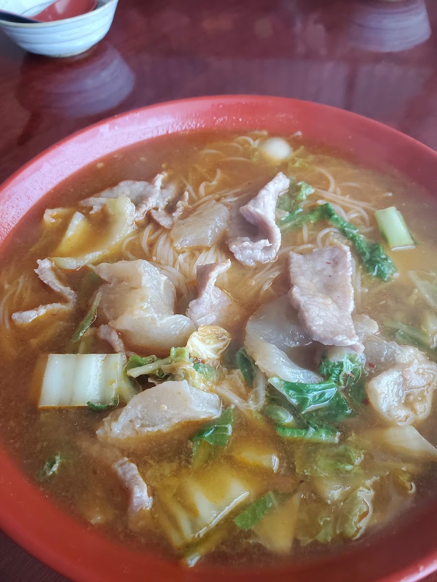 Noodles and Soup Sliced Beef and Beef Tendon Schezwan Soup Base with Thin Rice Noodles
